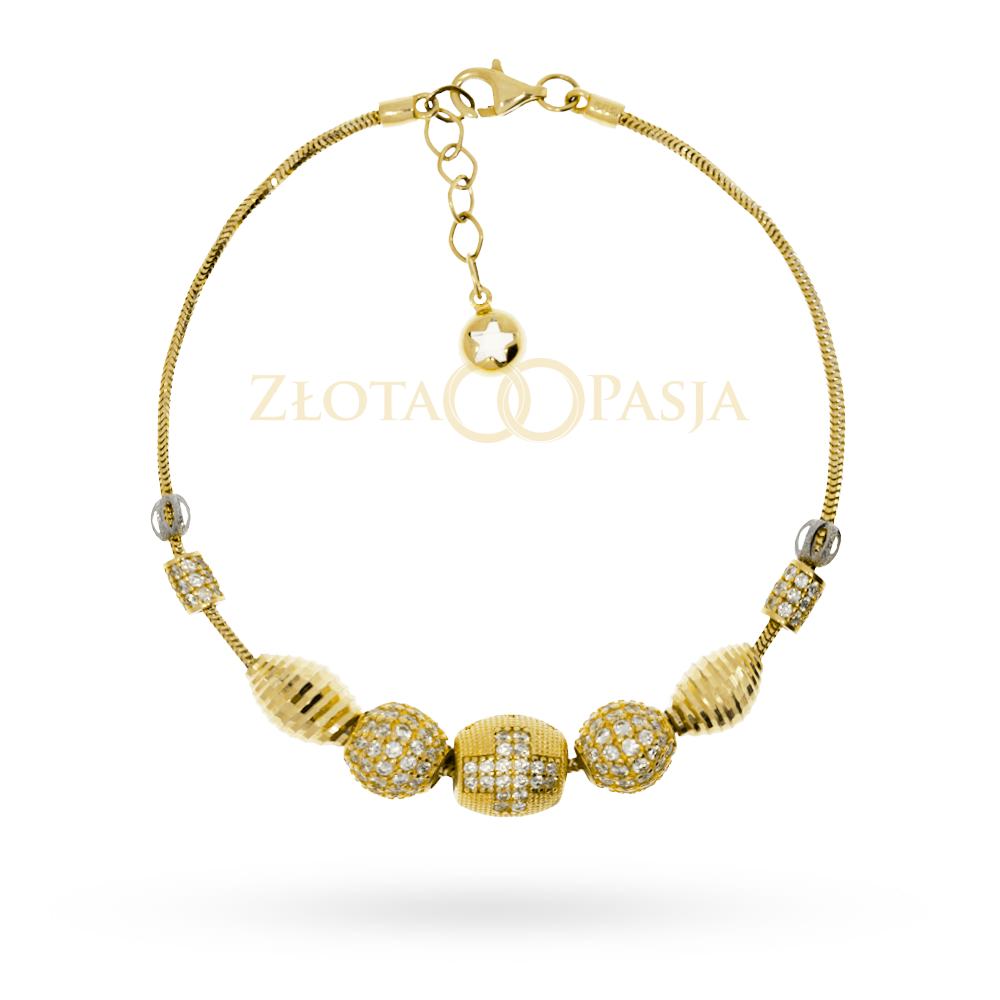 ilość Bransoletka Złota Splot Linka z Pięcioma Elementami o Różnych Kształtach