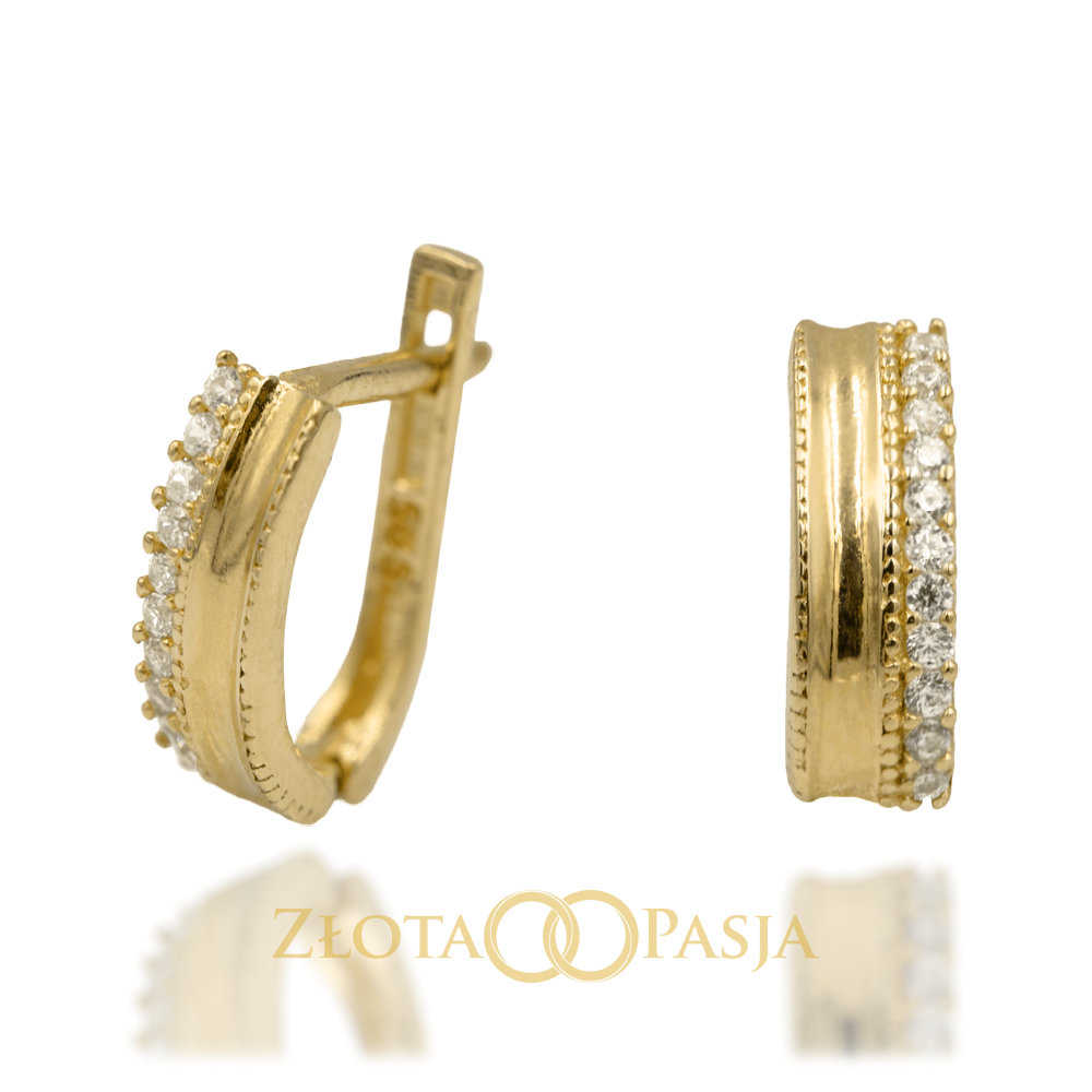 Kolczyki Złote Zaokrąglone z Wąskim Rzędem Cyronii Po Jednej Stronie