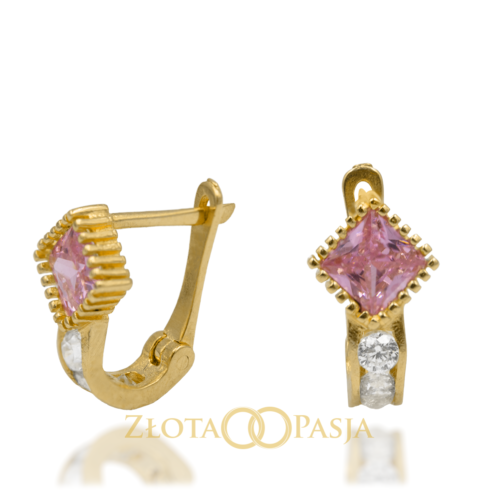 ilość Kolczyki Złote z Dużą Różową i Małymi Białymi Cyrkoniami