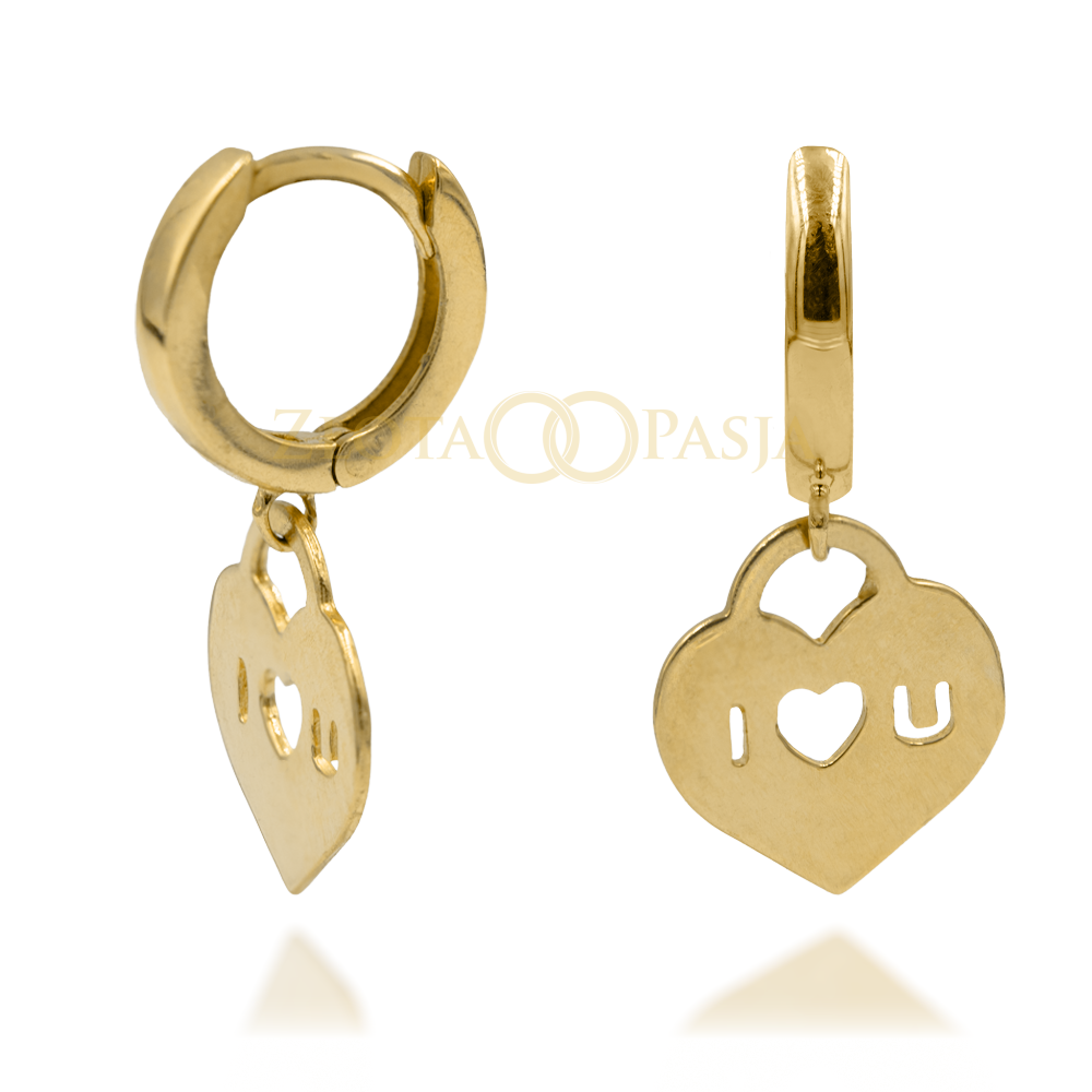 Złote Wiszące Kolczyki z Zawieszką „I ♥ U”
