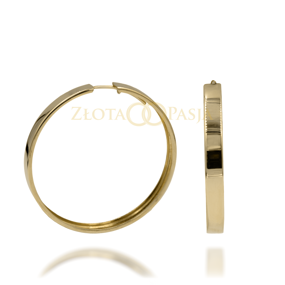 Ponadczasowe, złote kolczyki w formie delikatnych Kreolek o gładkiej, lśniącej powierzchni. Idealny wybór na co dzień oraz do eleganckich stylizacji.