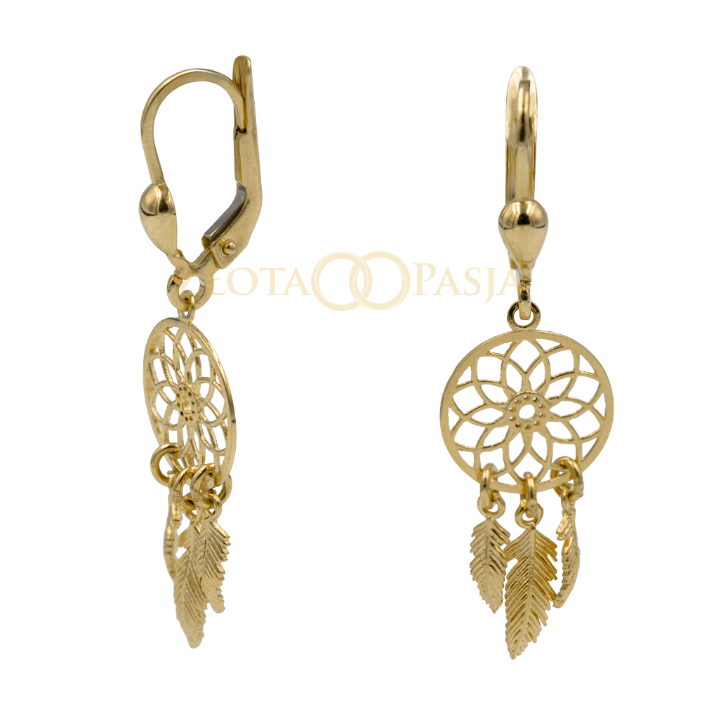 Kolczyki Złote Ażurowy Okrąg z Podpiętymi Trzema Piórami