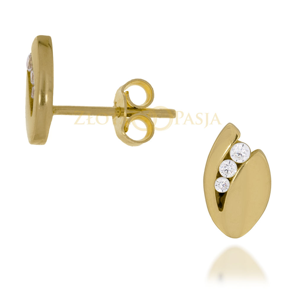 Kolczyki Sztyft Liść z Trzema Cyrkoniami