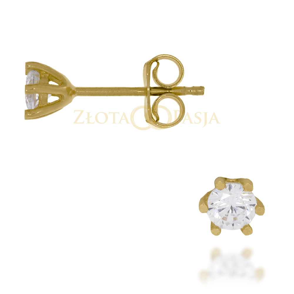 Stylowe kolczyki sztyft wykonane ze złota, z jedną cyrkonią osadzoną w sześcioramiennej oprawie, tworząc prosty, ale niezwykle elegancki akcent biżuteryjny.
