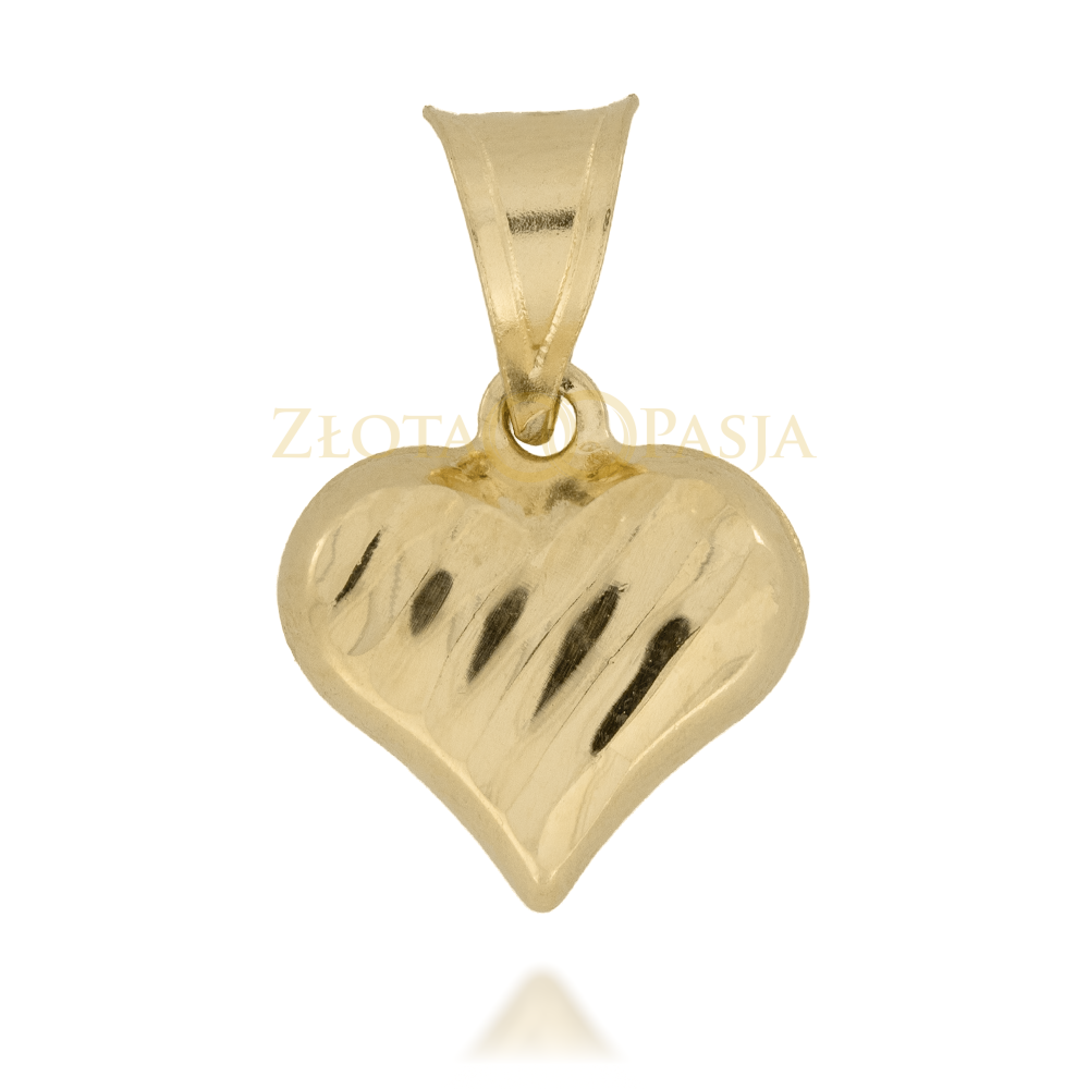 Zawieszka Złote Serduszko Nacinane na Ukos Równolegle z Jednej Strony z Drugiej Gładkie Wypukłe Obustronnie