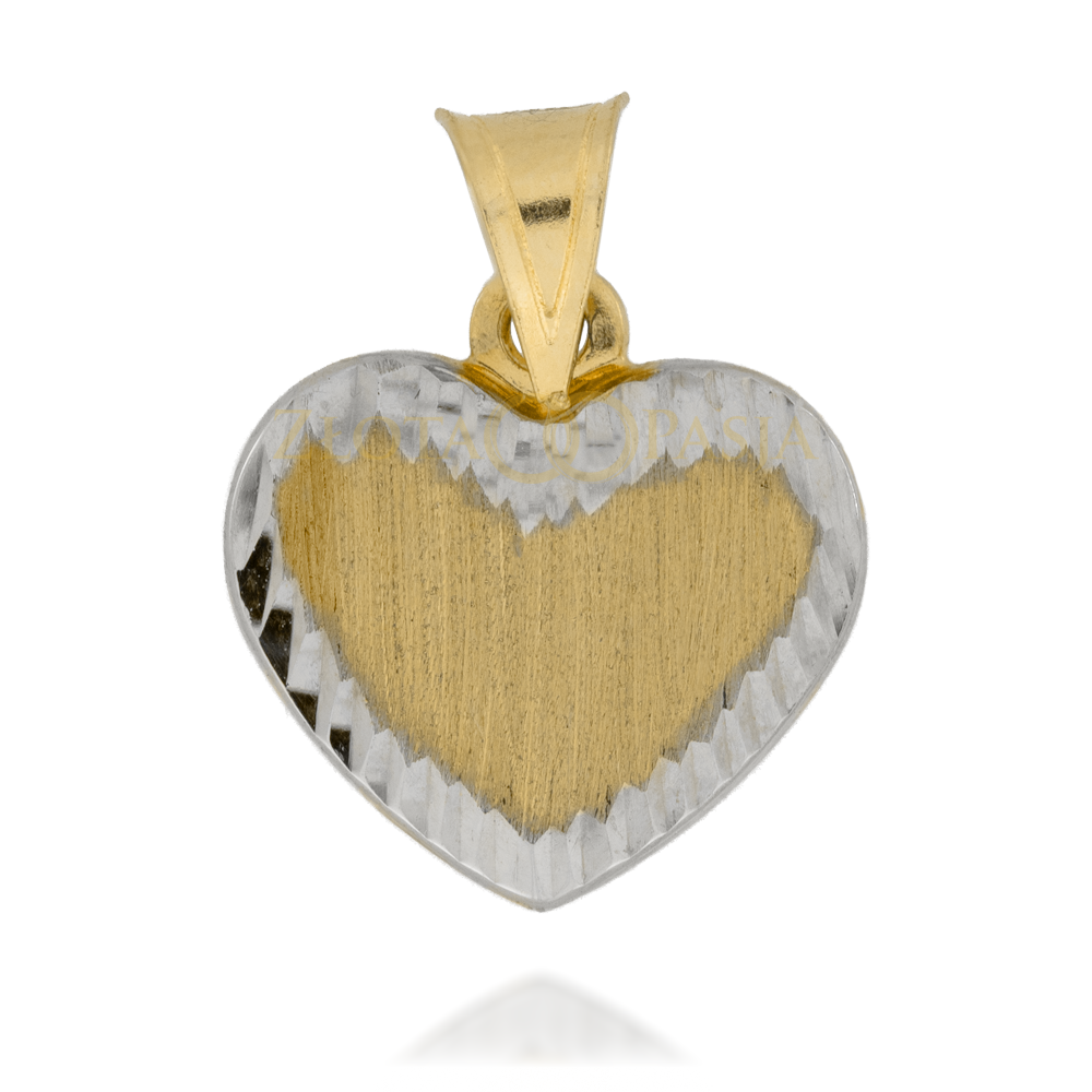 Zawieszka Złote Serce Szlifowane w Środku z Białym Nacinanym Złotem na Zewnątrz