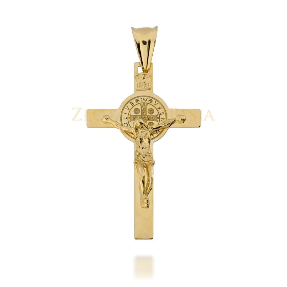 Zawieszka Złoty Krzyżyk ze Skośnymi Wypukłościami i Figurką Pana Jezusa