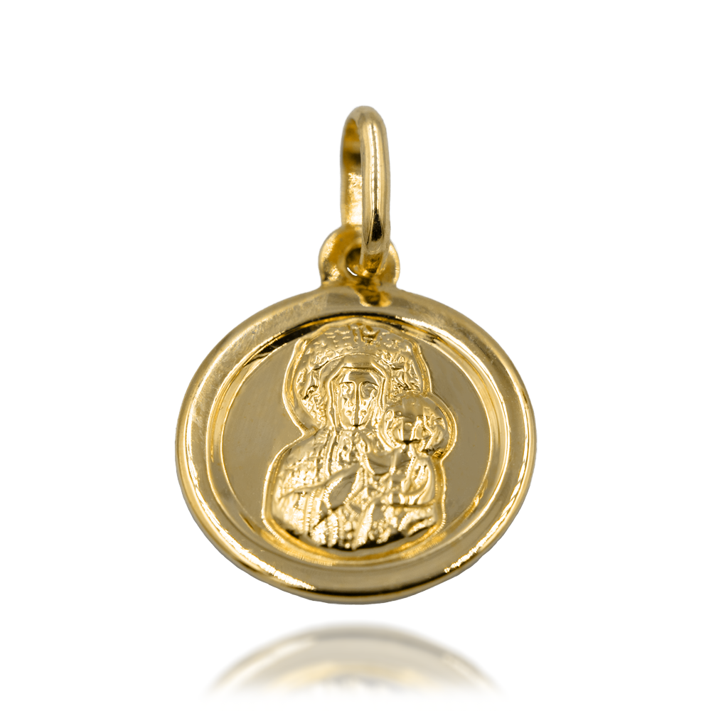 Złota Zawieszka Okrągła Matka Boska z Dzieciątkiem na Gładkim Tle