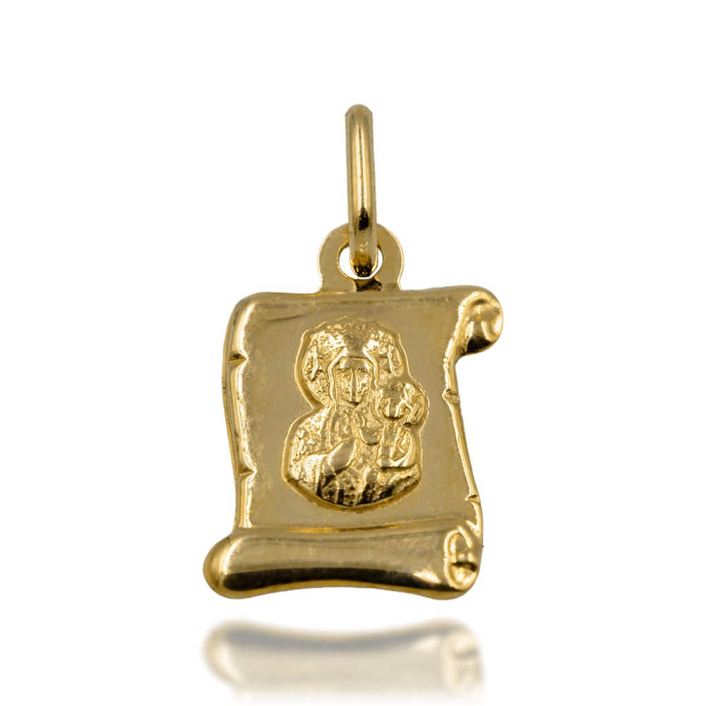 Wizerunek Matki Boskiej i Jezuska na tle rozwiniętego zwoju