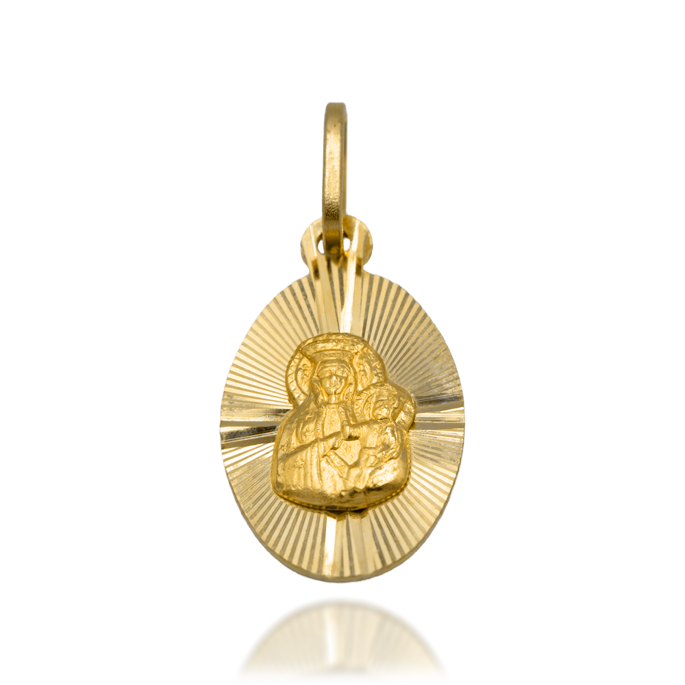 Zawieszka wypukła Matka Boska z Jezuskiem na owalnym nacinanym promienistym tle
