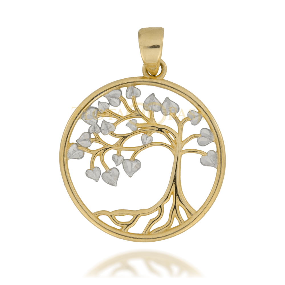 Zawieszka Złote Okrągłe Drzewko Szczęścia z Listkami z Białego Złota