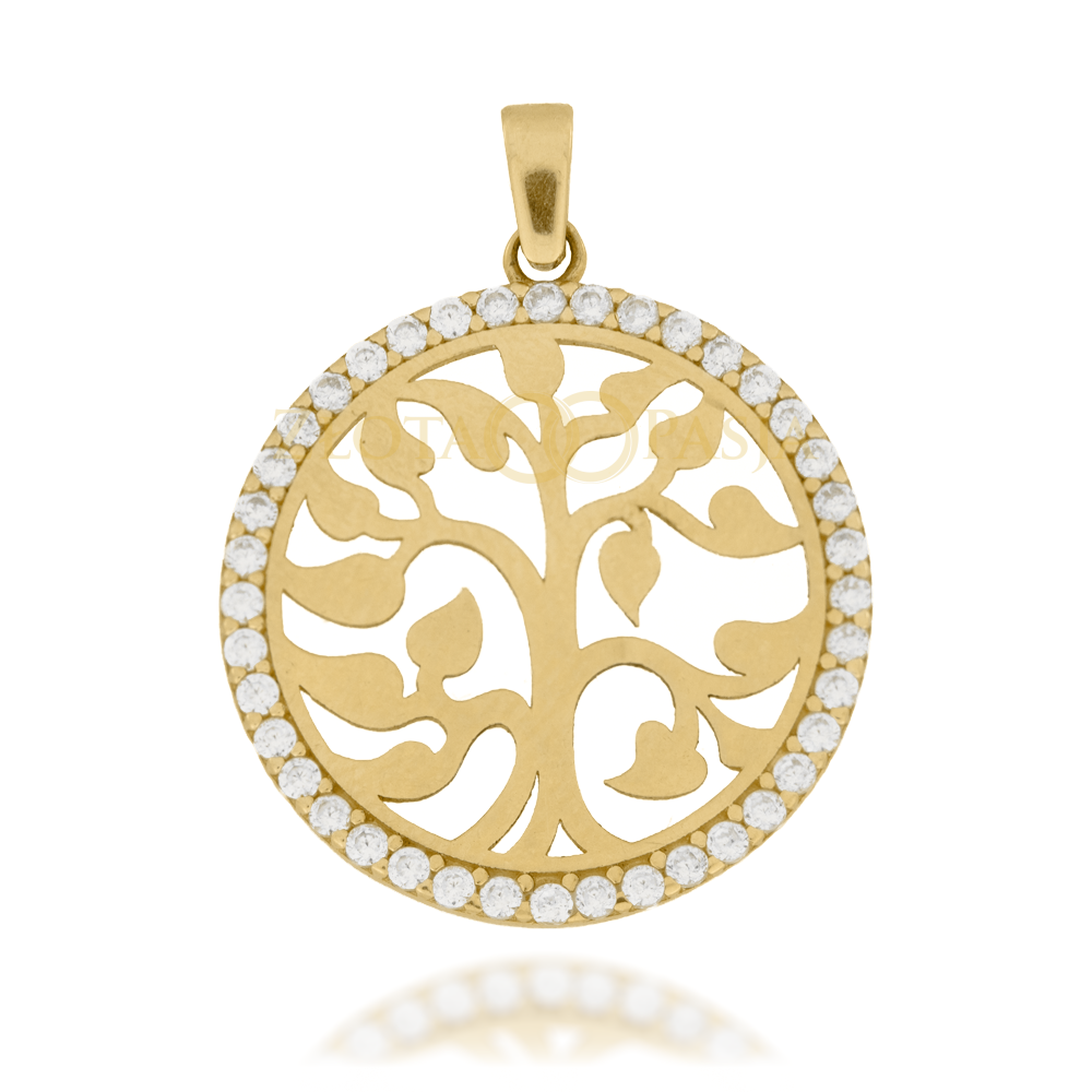 Zawieszka Złote Ażurowe Drzewko Szczęścia Wkomponowane w Okrąg z Białych Cyrkonii