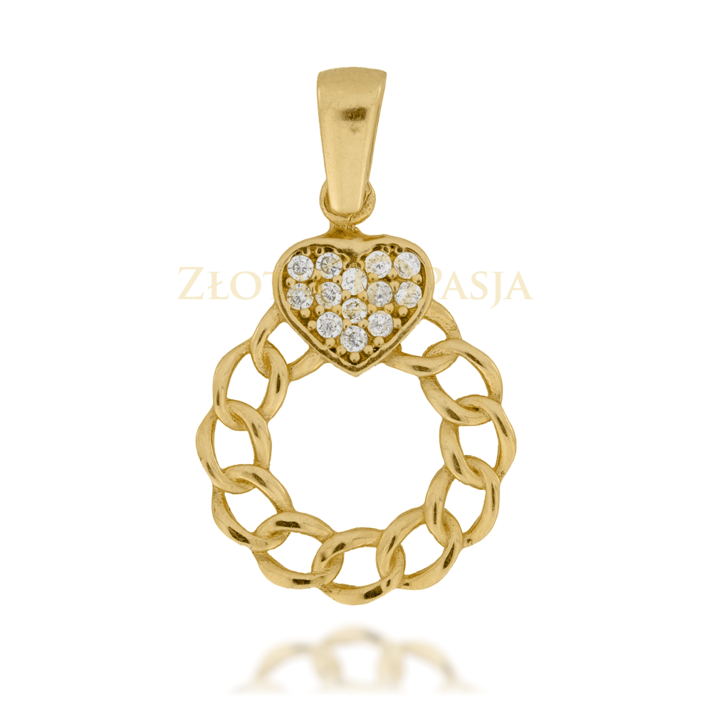 Zawieszka Złota Okrągła Struktura Łańcuszka Łączona na Górze Serduszkiem Wysadzanym Cyrkoniami